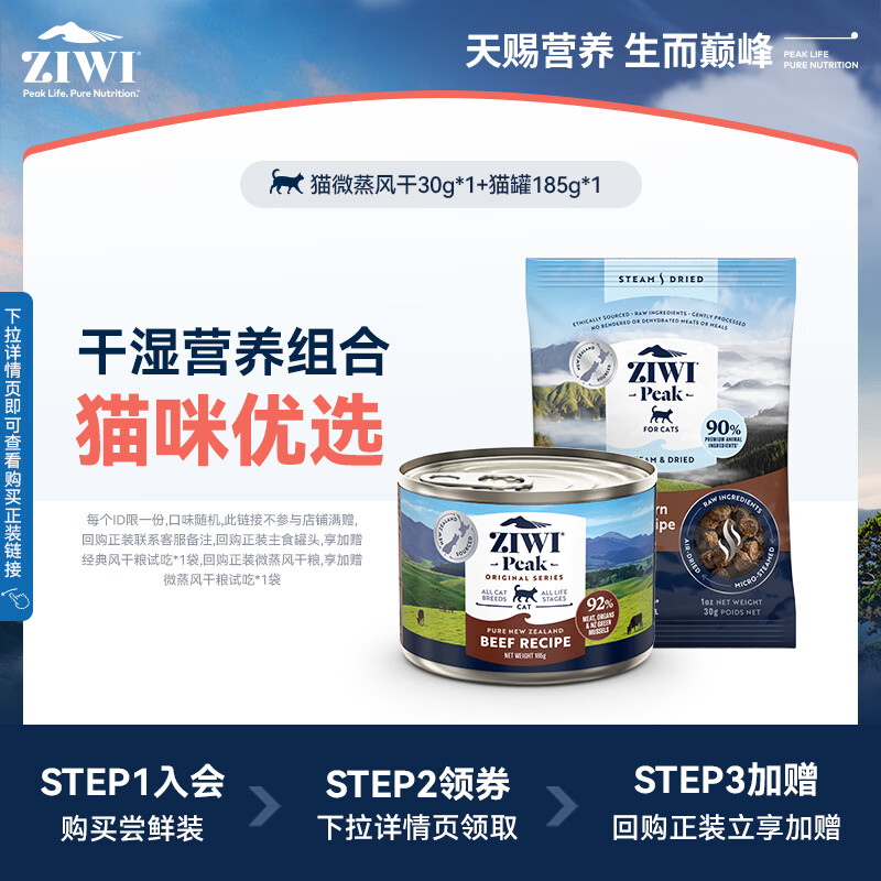 旗舰店滋益巅峰(ZIWI)【会员尝鲜试吃】ZIWI猫罐185g*1+微蒸风干猫粮试吃30g*1 猫罐185g+试吃30g*1