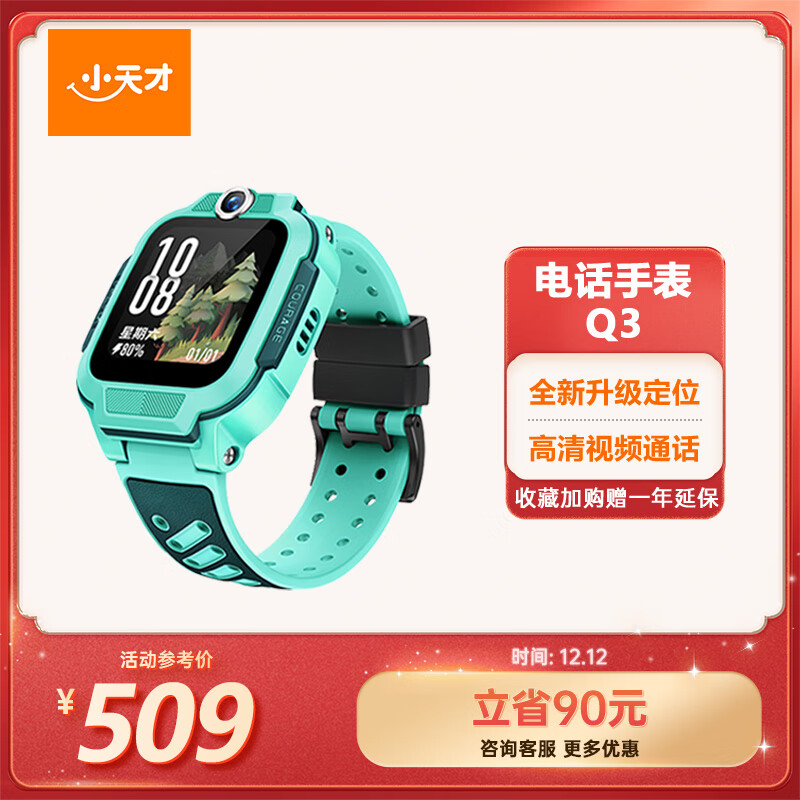 自营小天才儿童电话手表Q3玉髓绿AI精准定位防水大屏视频通话学生儿童智能手表爆款升级移动支付男孩女孩
