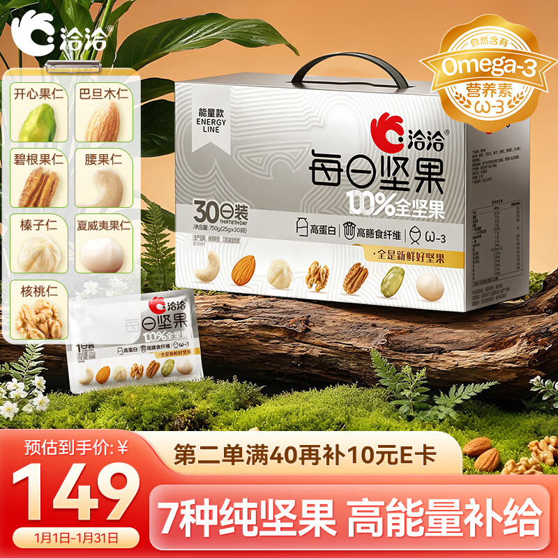 自营洽洽健身款每日纯坚果750g/30袋装开心果休闲零食坚果礼盒高蛋白年货