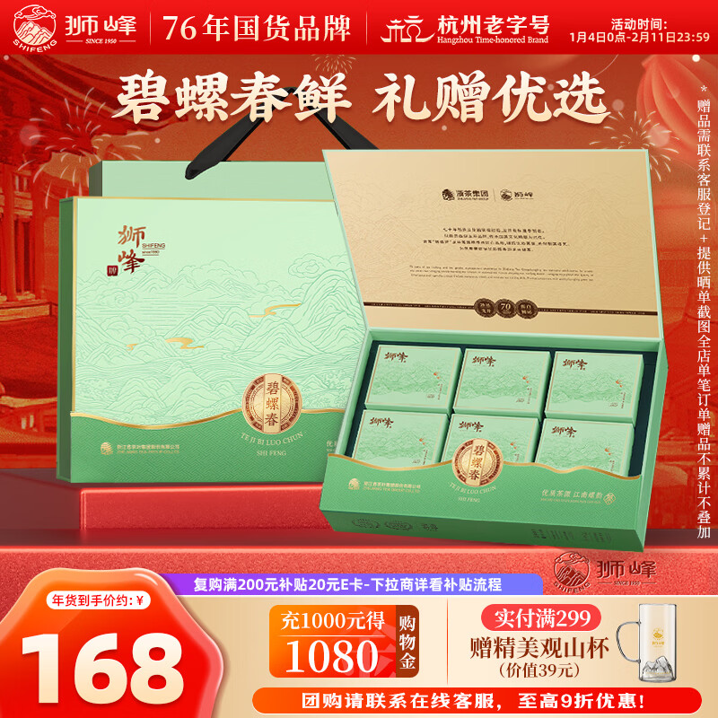 自营狮峰绿茶碧螺春茶叶 明前特级180g送礼礼盒装 自饮送礼皆可