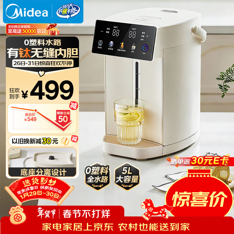 自营美的(Midea)有钛电热水瓶电水瓶 烧水壶电水壶电热水壶 不锈钢大容量家用保温恒温 可拆MK-SP50E-30Wpro-Ti