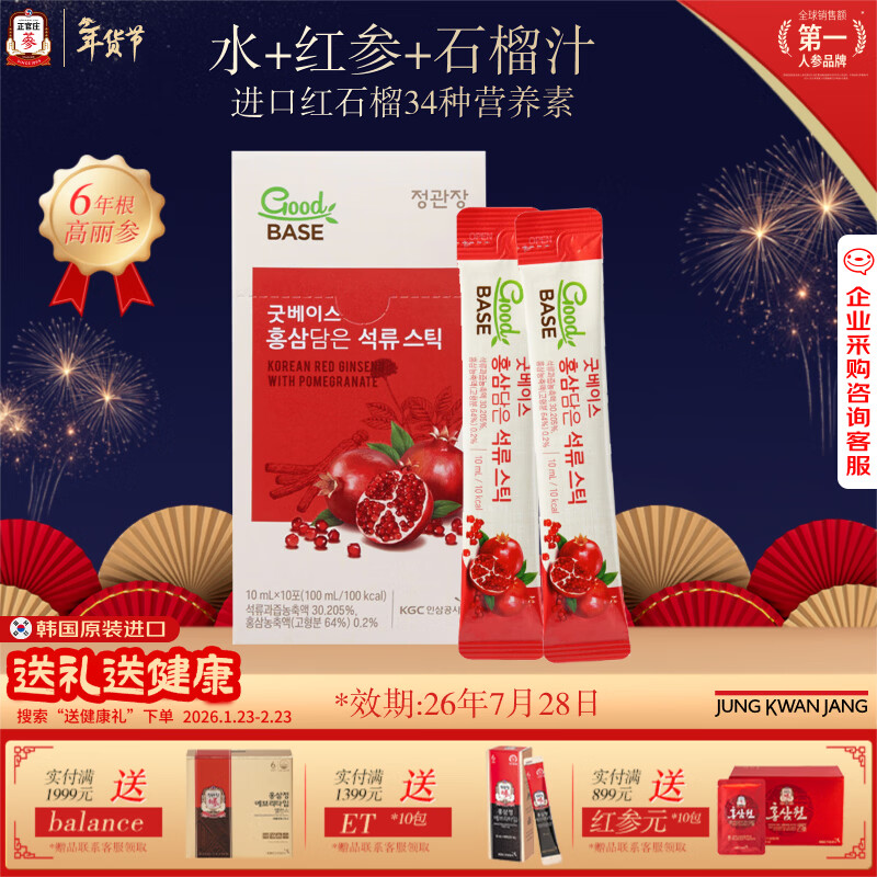 自营正官庄人参红石榴液10ml*10包6年根高丽参 辅酶Q10花青素新年礼物
