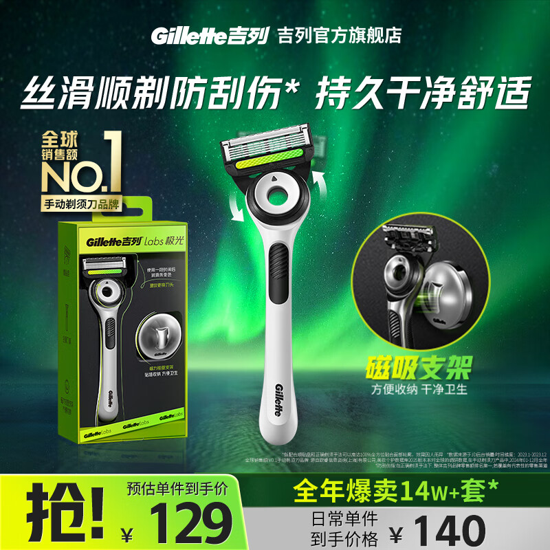 旗舰店吉列剃须刀手动 5层刀片 吉列刀片 刮胡刀手动 便携款 生日礼物送男 非吉利 锋隐5致顺 1刀架 1刀头 +磁吸支架【极光】