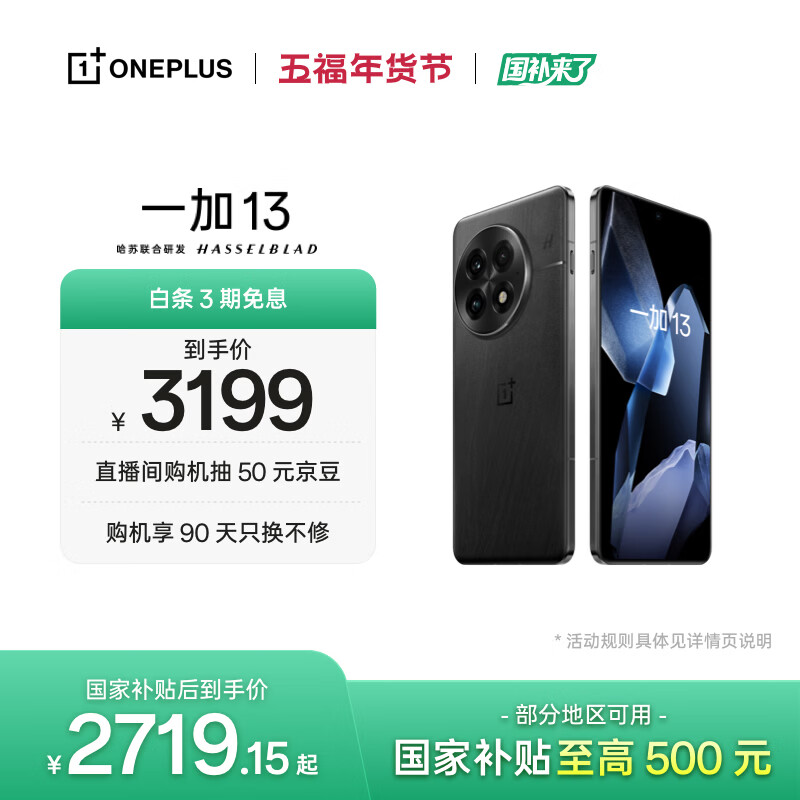 自营一加 13 12GB+256GB 黑曜秘境 oppo 高通骁龙 8至尊版 6000mAh电池 智能游戏电竞5G旗舰手机 国家补贴