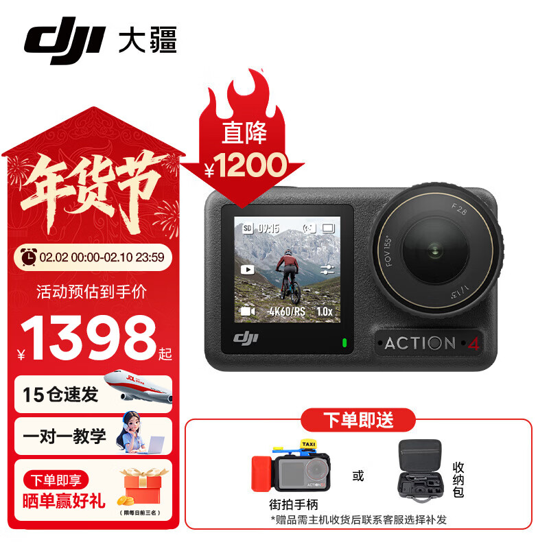 大疆(DJI)Osmo Action 4 运动相机 摩托车山地公路骑行潜水防抖户外 vlog 相机 Action 4 标准版【明日达专享】 标配(不含随心换)