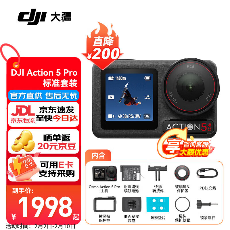 大疆(DJI)Osmo Action 5 Pro 运动相机 action5 pro 骑行潜水徒步滑雪冲浪挂脖记录仪vlog手持相机 Action5 Pro标准套装 官方标配(无内存卡) 官方标配(无随心换)