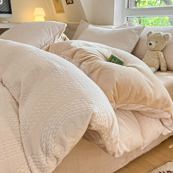 旗舰店兰芮(Lanrui)A类秋冬加厚牛奶绒四件套双人被套床单枕套法兰绒被罩 麦芮-咖 200*230cm四件套(1.5/1.8m床)