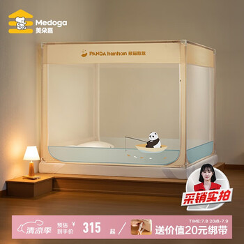 自营美朵嘉(MEDOGA)A类家用卡通儿童防摔蚊帐支架加固三开门淡蓝1.8x2米【抑菌面料】
