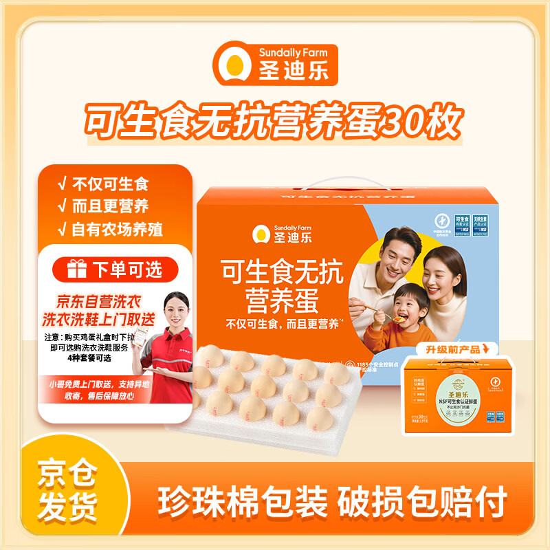 自营圣迪乐村 可生食新鲜鸡蛋30枚礼盒装 净重3斤