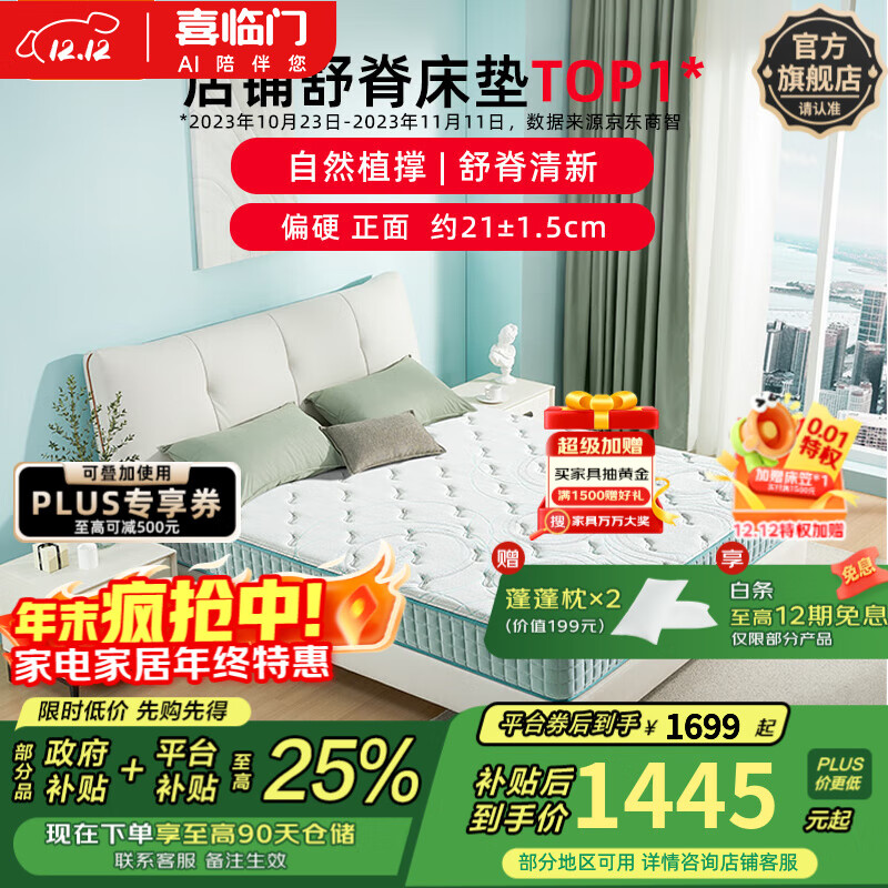 旗舰店喜临门床垫 政府补贴 独立袋装弹簧加硬护脊黄麻弹簧厚床垫 光年护脊 光年护脊3.0床垫【厚21cm】 1.8*2米