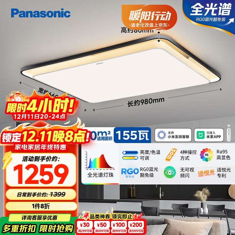 自营松下(Panasonic)吸顶灯全光谱智能护眼客厅灯泽巡155瓦HHXSX060