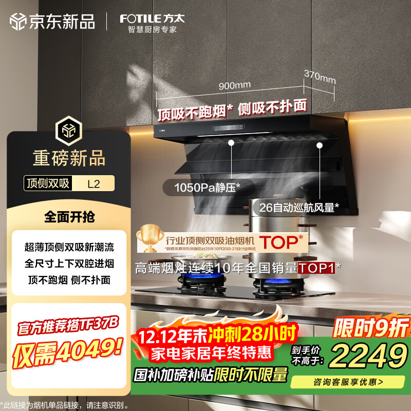 自营方太L2超薄顶侧双吸26风量 上下全域进烟 【推荐灶TF37B】抽吸油烟机家用厨房 以旧换新国家补贴20%