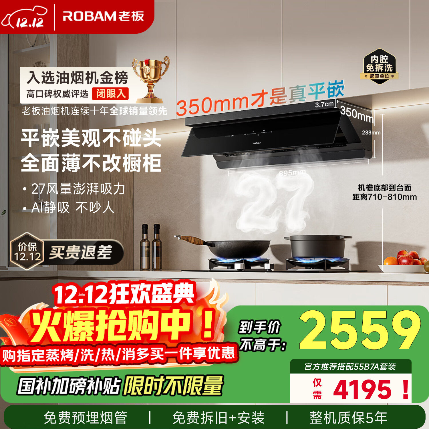 自营老板【超薄平嵌小黑镜L1】抽吸排油烟机27风量顶侧一体免拆洗【推荐搭55B7A】家用以旧换新国家补贴20%