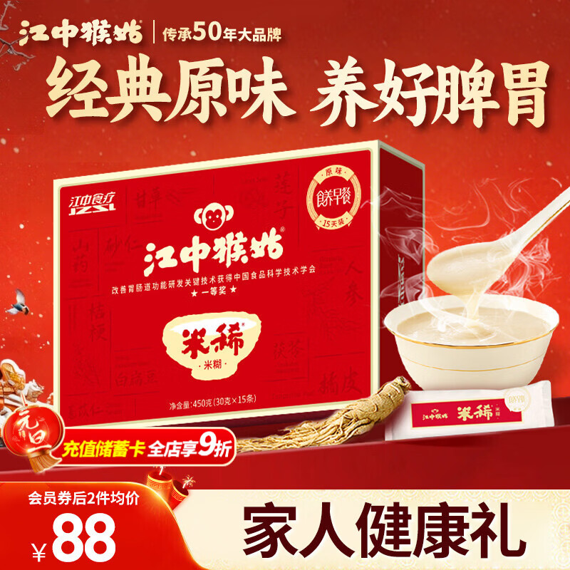 自营江中猴姑米稀养胃米糊15天原味早餐菇流食中老年人营养品代餐长辈送礼450g