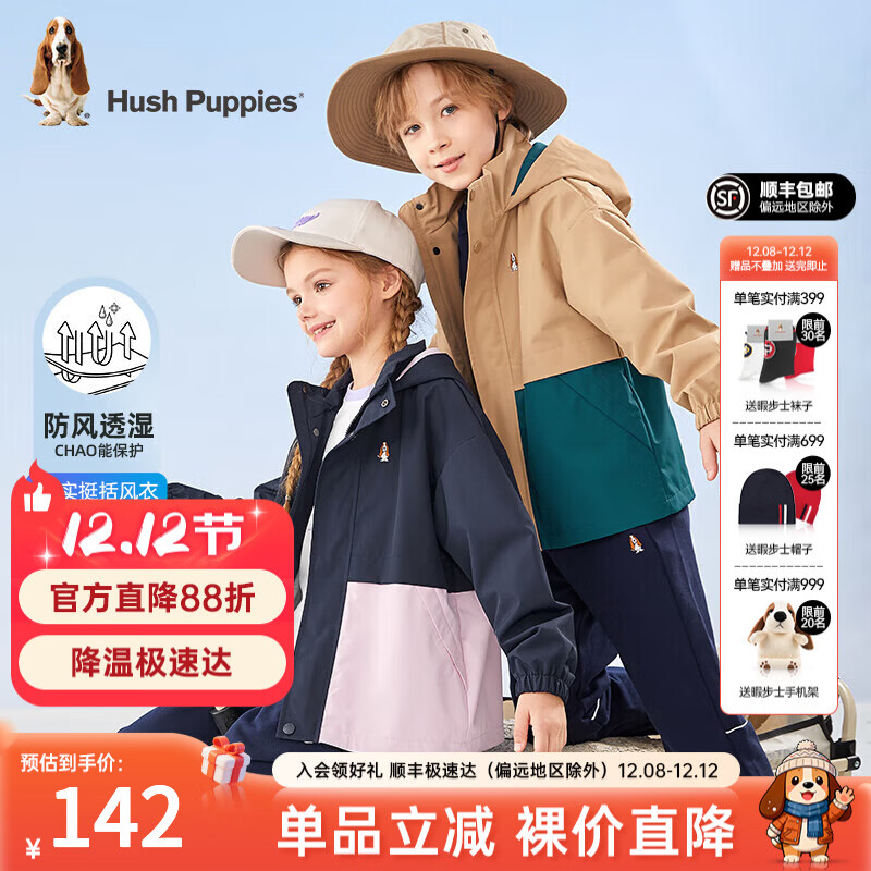 旗舰店暇步士(Hush Puppies)童装儿童春秋季经典款风衣外套男童款时尚百搭风衣外套青春休闲 幻夜绿(D款) 160cm(偏大一码)