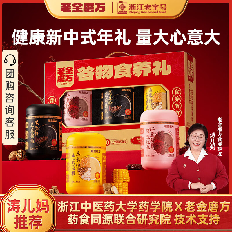 自营老金磨方黑芝麻糊阿胶红枣粉玉米葛根山药粉年货节礼盒礼品送长辈1900g