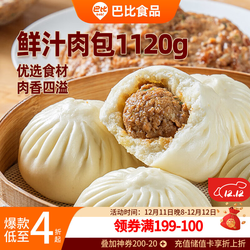 自营巴比 鲜汁肉包70g*16只 共1120g包子儿童早餐 面点 生鲜 速冻食品