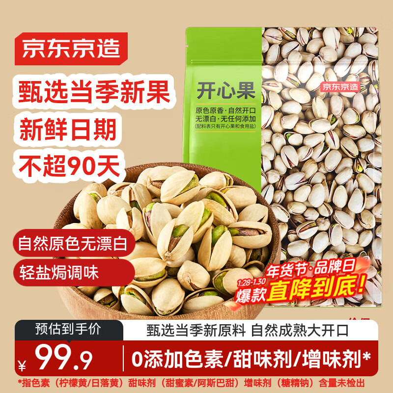 自营京东京造 开心果1.13kg大颗粒无漂白每日坚果休闲零食量贩装年货送礼自营