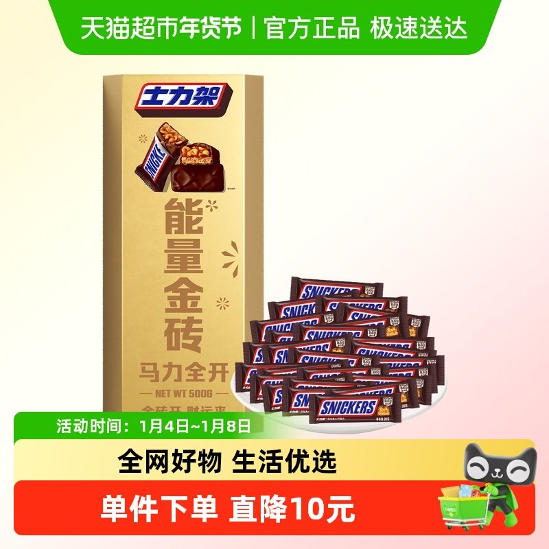 士力架新春金砖礼盒500g*1盒花生夹心巧克力休闲零食糖果送礼物