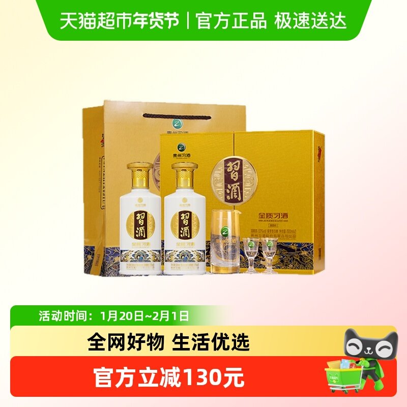 习酒金质礼盒装53度酱香型国产白酒500ml*2瓶内含酒具收藏送礼