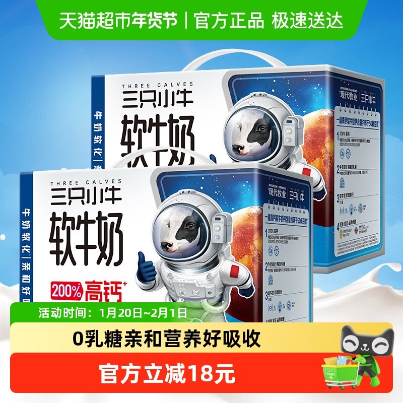 现代牧业三只小牛0乳糖高钙软牛奶20盒新年送礼年货礼盒