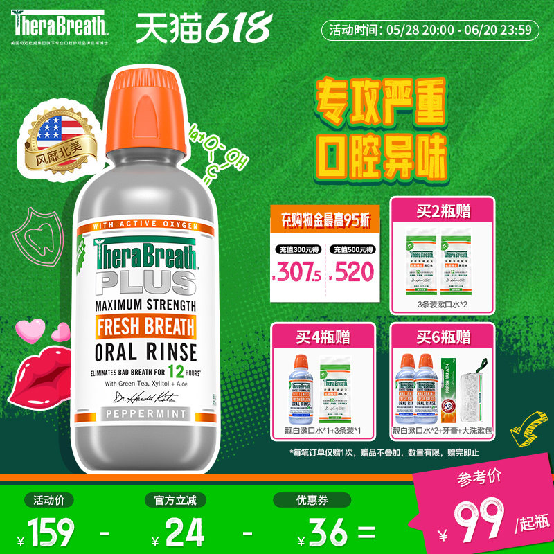 旗舰店TheraBreath凯斯博士Plus漱口水升级瓶装清新持久留香口臭