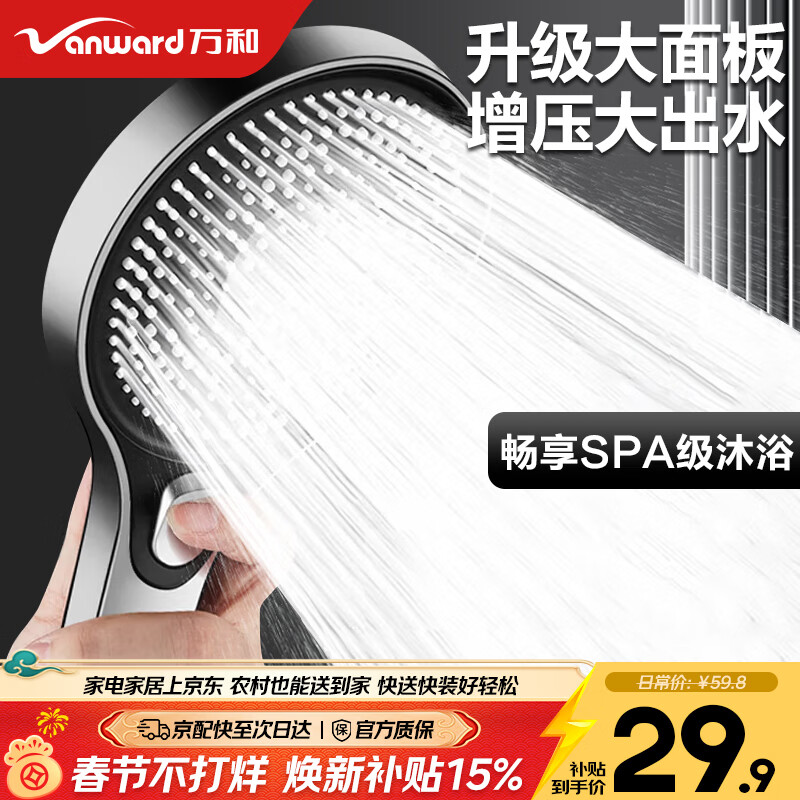 自营万和(Vanward)增压淋浴花洒喷头套装浴室家用三档出水手持花洒莲蓬头13cm大面板