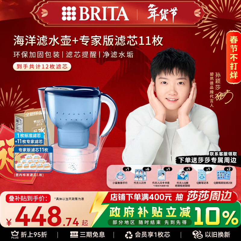 自营碧然德(BRITA)过滤净水器 滤水壶 海洋系列 3.5L(蓝色)+去水垢专家版滤芯11枚 环保加固包装