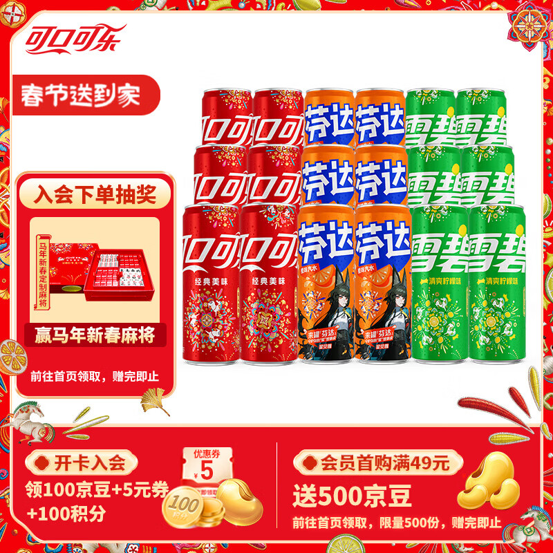 百亿补贴可口可乐(Coca-Cola)混合装可乐雪碧芬达碳酸饮料汽水330ml 新老包装随机发 混合装330ml*18罐(各6罐)