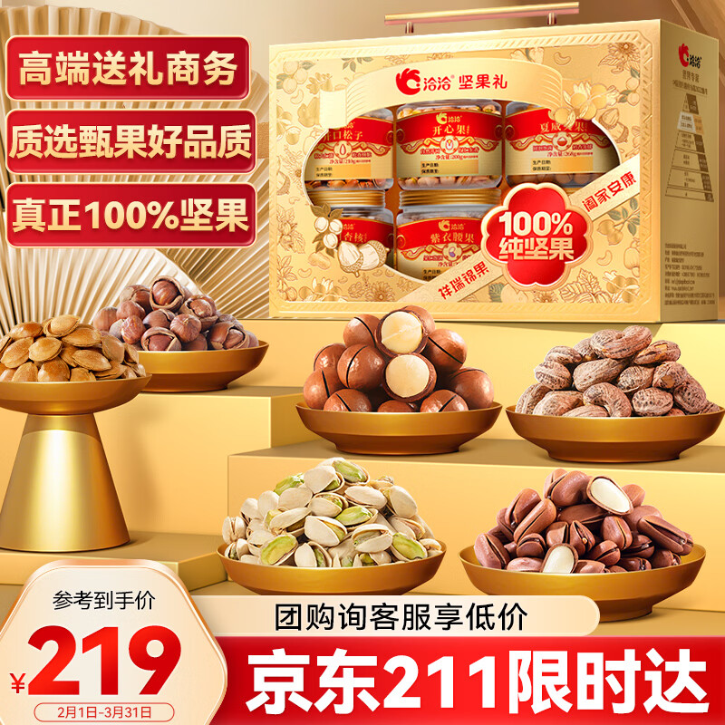 自营洽洽纯坚果礼盒1389g/6罐年货礼盒开心果松子腰果企业团购送礼