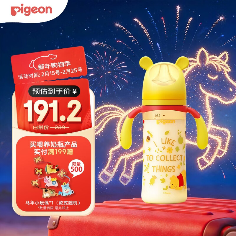 自营贝亲(Pigeon)PPSU迪士尼双把手奶瓶330ml LL号奶嘴 秋收时分 9月+ AA235