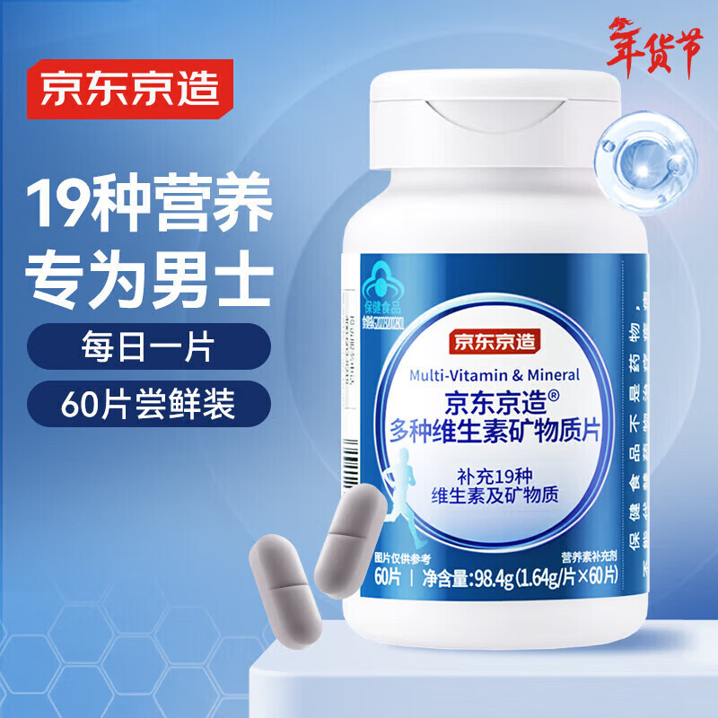 自营京东京造 男士多种复合维生素矿物质片60片 维生素b族维生素c锌镁